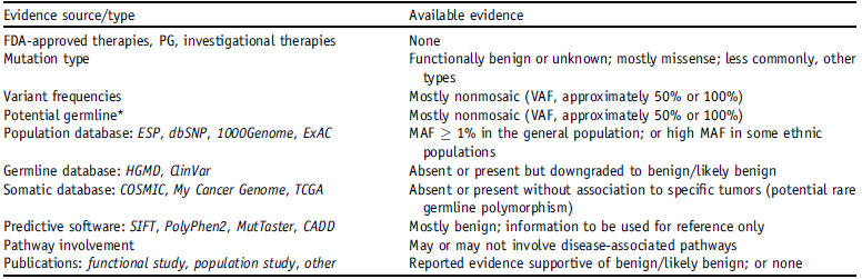 该工作组第一时间对北美地区超过40家的临床检测实验室进行了问卷调查,结果显示不同实验室在检测组织类型、检测基因数量、是否检测肿瘤组织全外显子组或全基因组、以及其他细节方面都存在较大差别,此外在不同单位的检测报告的报告内容方面也存在较多差异。该工作组认为,为医疗组织给予分类的遗传变异报告对病人及整个医疗行业都极为重要,包括:给予正确的肿瘤对靶向治疗反应性信息;建立先进别的医疗指南;以及与临床试验合作,对建立不同实验室间的通用标准给予支持。基于以上这些考量,工作组专家们根据已有数据、文献报道和专业知识,给出以下指南建议。