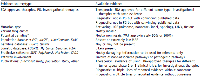 Level A Biomarkers that predict response or resistance to FDA-approved therapies for a specific type of tumor Biomarkers included in professional guidelines as diagnostic for a specific type of tumor Biomarkers included in professional guidelines as prognostic for a specific type of tumor